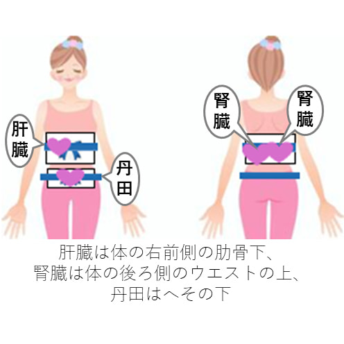 肝臓と腎臓は体内の毒素を出し、新陳代謝を助ける働きがあるので、この臓器を温めてその働きをよくすると、全身の内臓の働きがよくなるという考え方です。