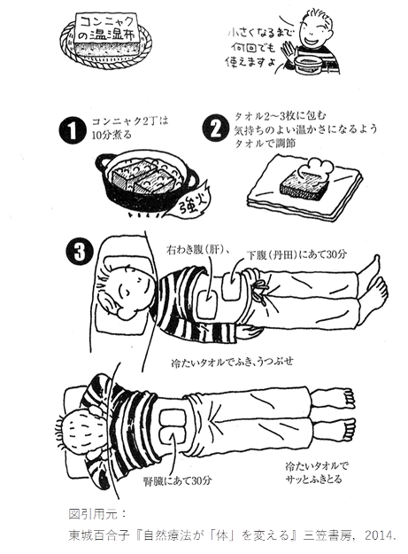 こんにゃく湿布の方法(詳細は東城百合子さんの著書参照)